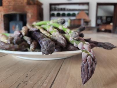 The asparagus are coming up in the vegetable garden. This is the first year I have allowed myself to harvest them. It is their third season. I bought most of them as two year olds. I have Mary Washington (Herb & Co), Sweet purple (hardware shop), Jersey Knight (Herb & Co) and Fat Bastard (Diggers).